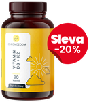 Aktivní forma methylkobalamin. Vitamín B12 je vitamin rozpustný ve vodě, a je přirozeně obsažen v potravinách živočišného původu, jako jsou maso, ryby, mléčné výrobky a vaječné žloutky. Přispívá ke snížení míry únavy a vyčerpání, ke správné funkci nervového systému a přispívá k normální psychické činnosti. Významně podporuje tvorbu červených krvinek a jejich nedostatek může vést k únavě a slabosti. Vegetariáni a vegani mají vyšší riziko nedostatku tohoto vitamínu, protože se vyskytuje především v živočišných produktech.